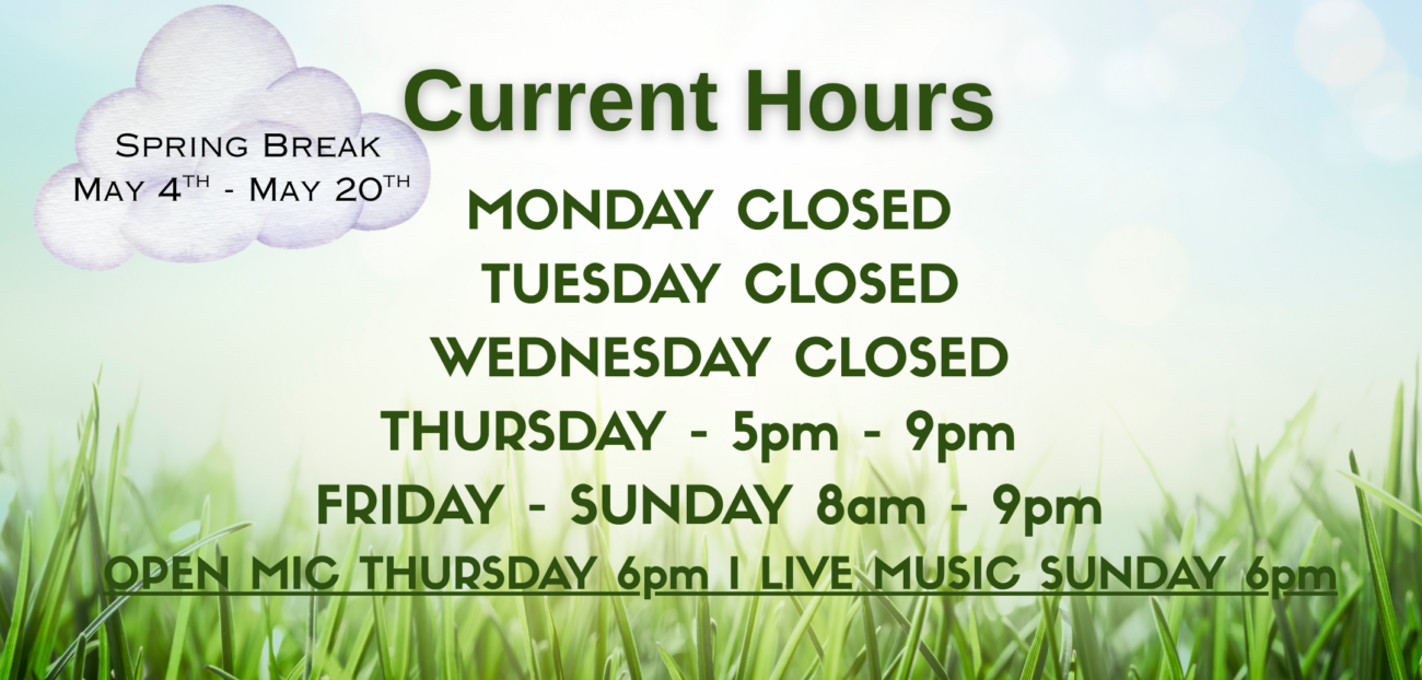 Join us in our cozy post and beam coffeehouse and see us transform from espresso bar to martini bar!